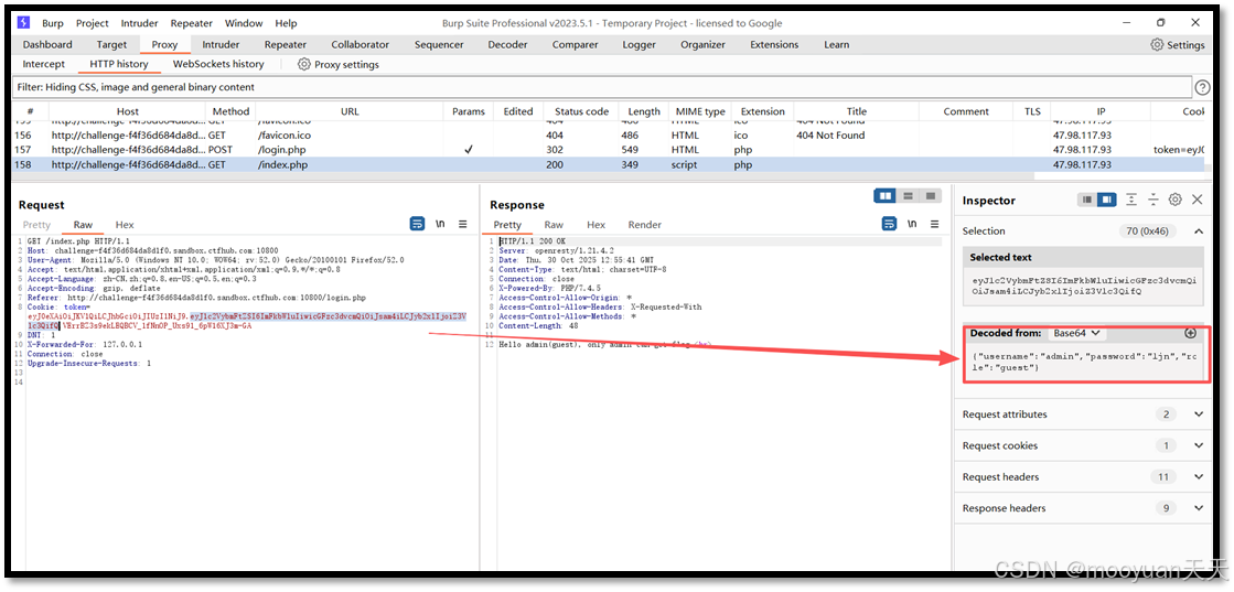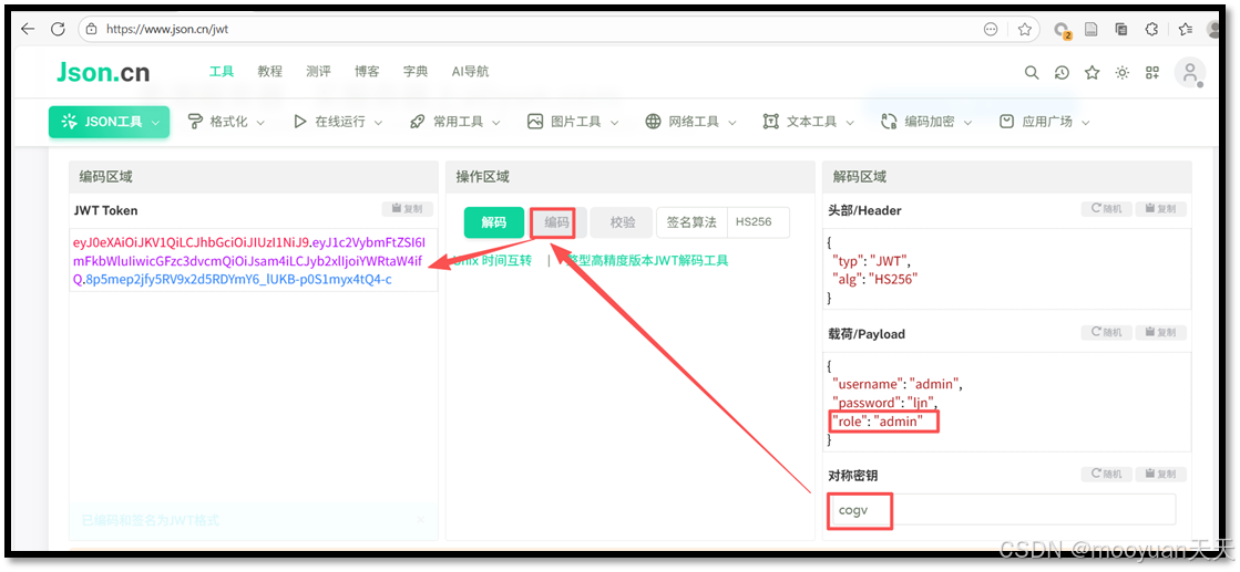 第二部分:{"username":"admin","password":"ljn","role":"guest"}中的role改为admin,修改后如下所示。