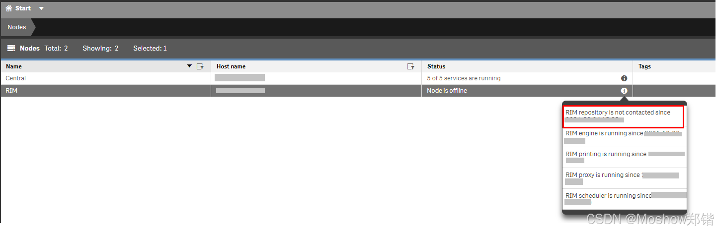 如果你的QMC node status是"Node Offline",或者只有Repository online,建议你重装Qlik Sense RIM node