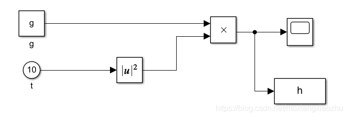 利用simulink搭建仿真模型,利用To Workspace模块将高度h导入到工作区。