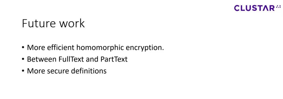 1)更加有效的homomorphic encryption。如上文提到的,约95%的时间都花在服务器update上,其中计算主要用于密文。如果我们可以提升homomorphic encryption的效率,我们的系统表现会大幅提升。