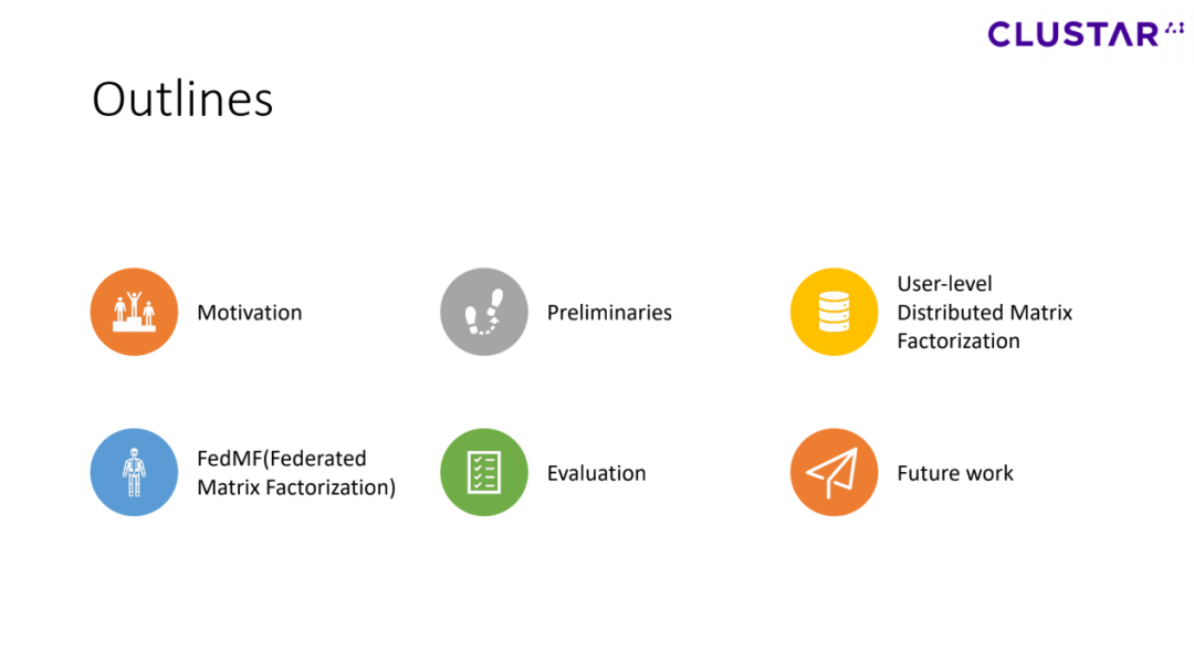 本文围绕6个角度来讲述这篇论文,研究意义、先行概念、分布式矩阵分解、联邦矩阵分解、实验评估结果、下一步研究方向。