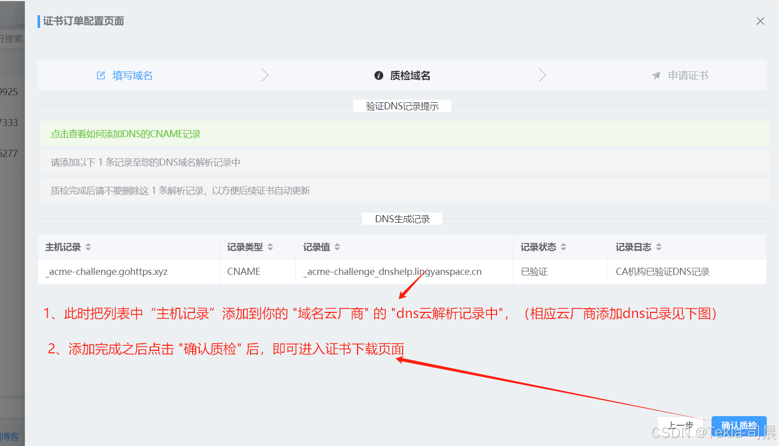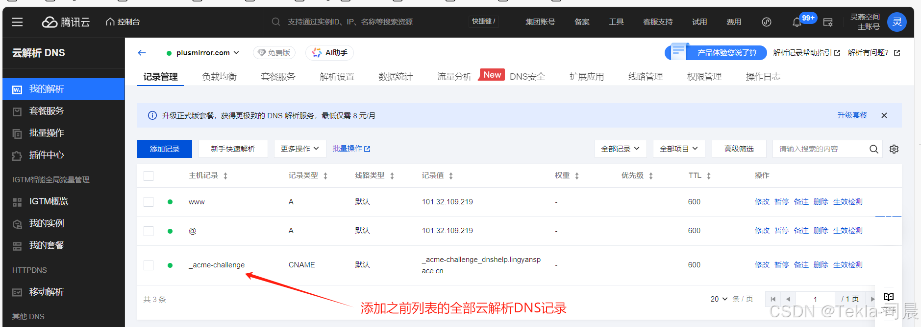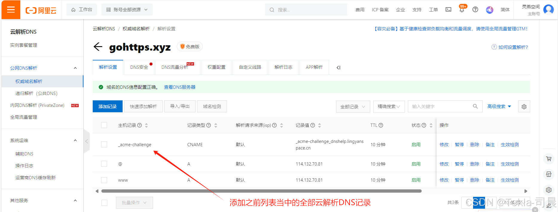 3、查看DNS记录=》去购买域名的云厂商添加DNS记录