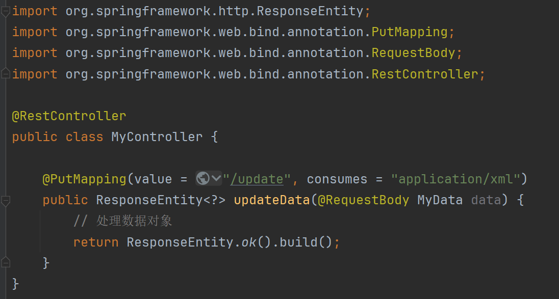 注意consumes = "application/xml"指定了该方法只处理application/xml类型的请求体。