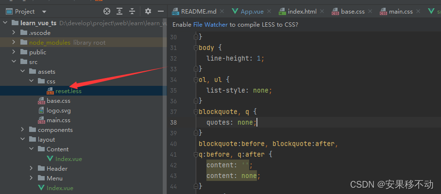 博客介绍了reset.css的使用,reset.css可从网上获取,也可根据项目自行修改,若不修改则会使用项目自带难用的css。还说明了获取方式,并提及在App.vue中新增内容来引用,可注释或删除以前的引用。