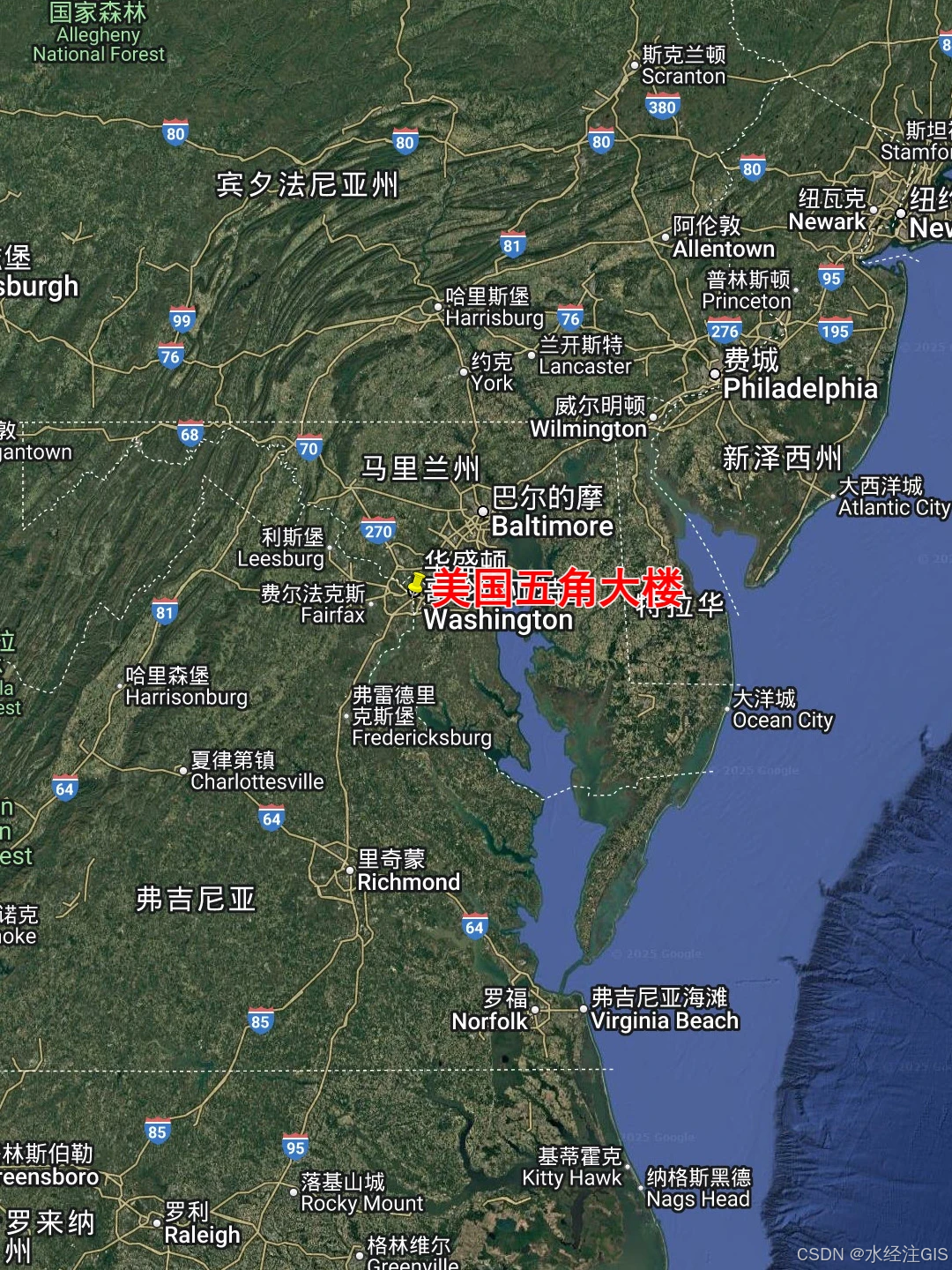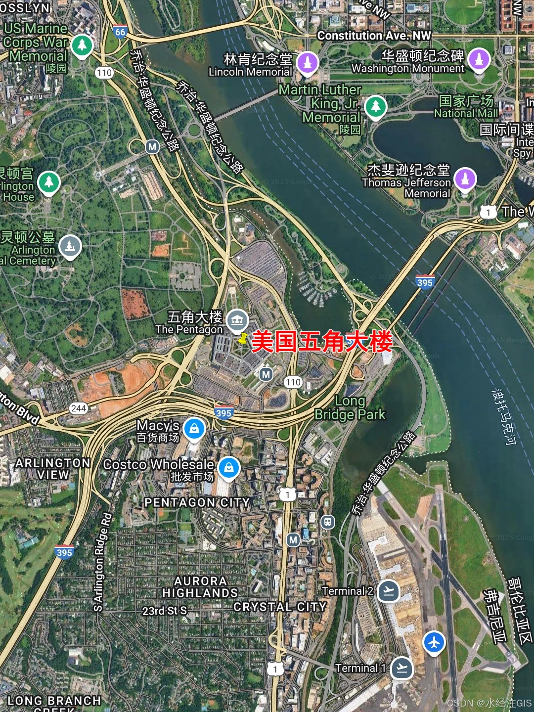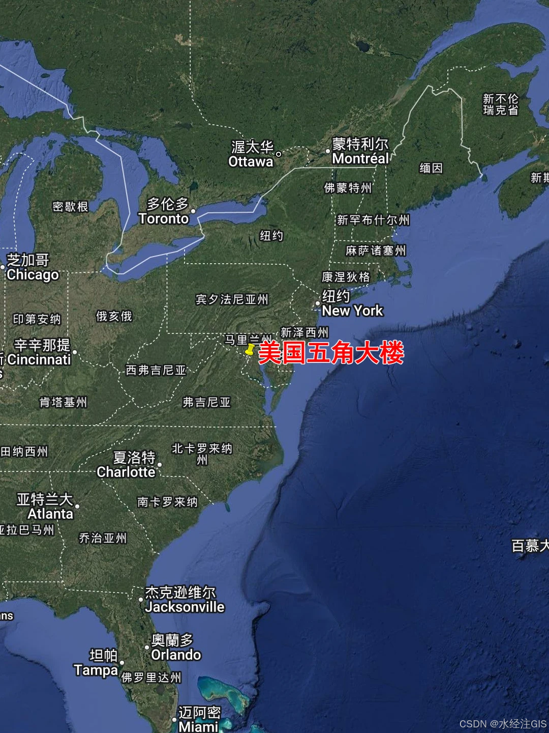 打开以下网址并切换到全球一张图,可查看美国五角大楼卫星影像。