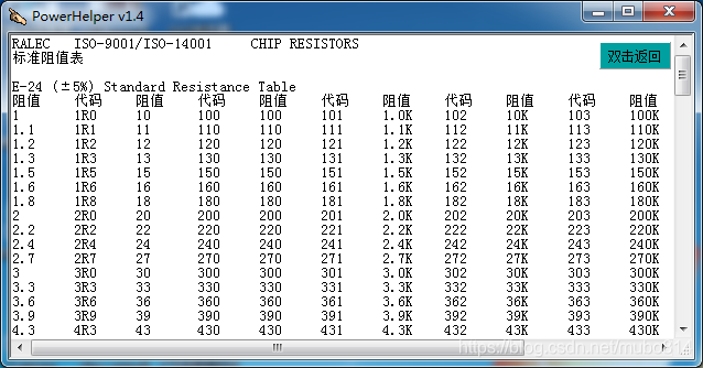 在电阻输入窗口点右键,可以显示标准电阻值表: