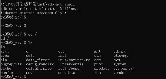 输入 adb shell 命令进入设备 shell 终端,如下图所示: