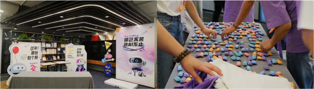 活动签到处,几个由AI创作的“青春活力,干劲十足”的机器人IP形象成为了视觉焦点,吸引了众多小伙伴们拍照打卡。此外,商派22周年庆上,还首次播放了三首由AI大模型创作的商派企业文化歌曲。这些歌曲不仅旋律优美,歌词更是生动传达了商派“坚韧皮实,靠谱专业”的企业文化,受到了大家的欢迎。