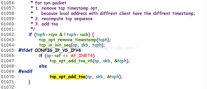 lvs侧在TCP报文的选项中插入clientip代码: tcp_fnat_in_handler()