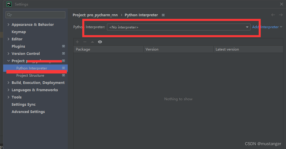 在pycharm窗口的右下角右下角,点击红色区域,打开interpreter setting,可以调出配置窗口,后续按方式一继续配置