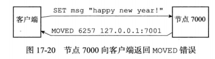 当节点发现键所在的槽并非由自己负责处理的时候,节点就会向客户端返回一个MOVED错误,指引客户端转向至正在负责槽的节点。
