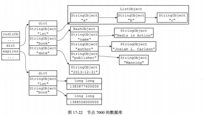 集群节点保存键值对以及键值对过期时间的方式,与第9章里面介绍的单机Redis服务器保存键值对以及键值对过期时间的方式完全相同。