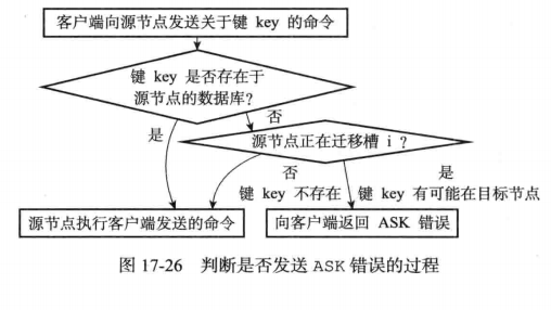 如果节点A正在迁移槽i至节点B,那么当节点A没能在自己的数据库中找到命令指定的数据库键时,节点A会向客户端返回一个ASK错误,指引客户端到节点B继续查找指定的数据库键。