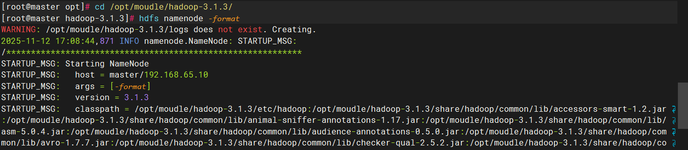 hdfs namenode -format #执行格式化动作