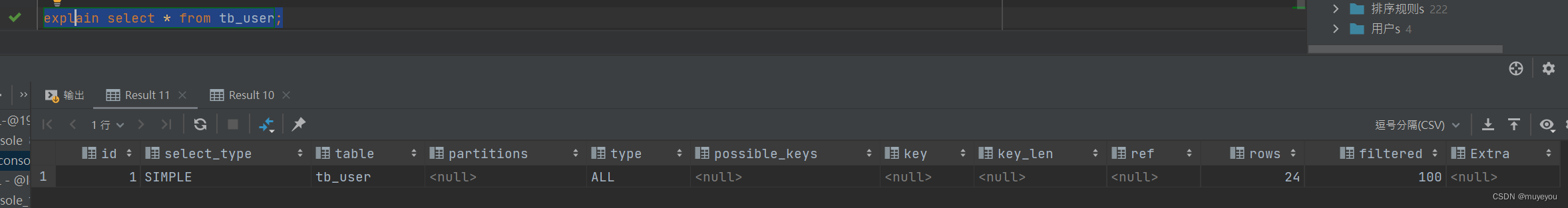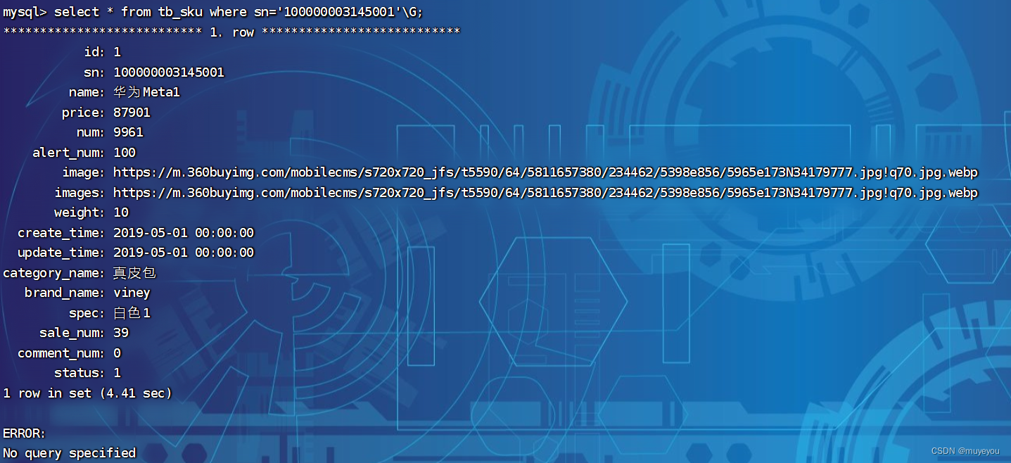 可以看到,执行这一句sql语句所耗时间为4.41秒。