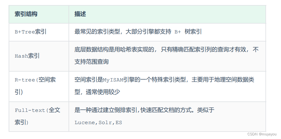 suoyin(index)是帮助MySQL高效获取数据的数据结构(有序)。