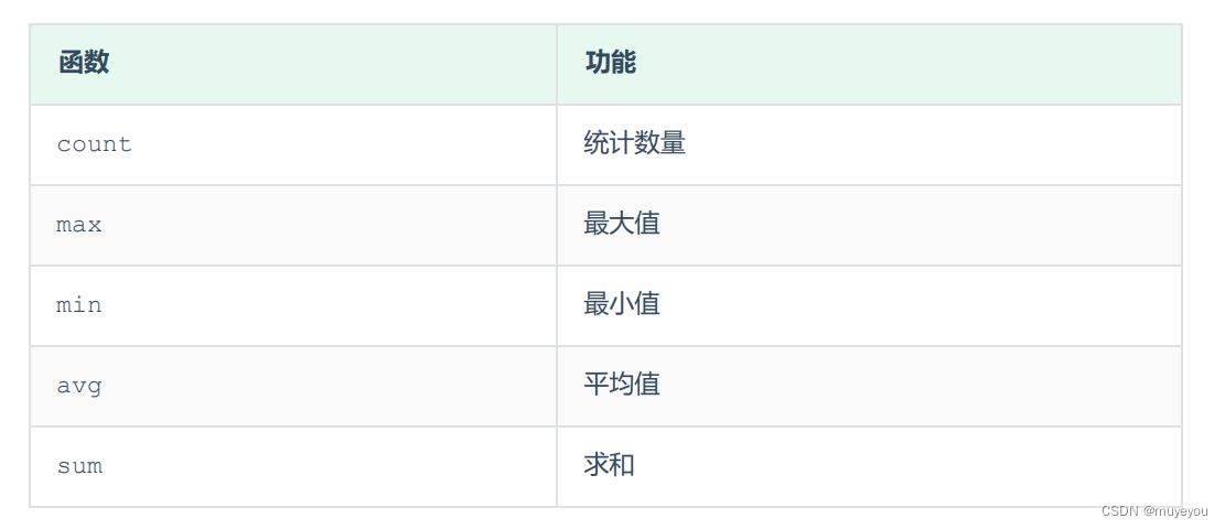 1.聚合函数:将一列数据作为一个整体,进行纵向计算。