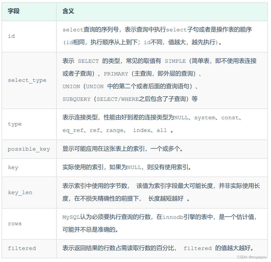 explain 或者 desc命令获取 mysql 如何执行 select 语句的信息,包括在 select 语句执行过程中表如何连接和连接的顺序。