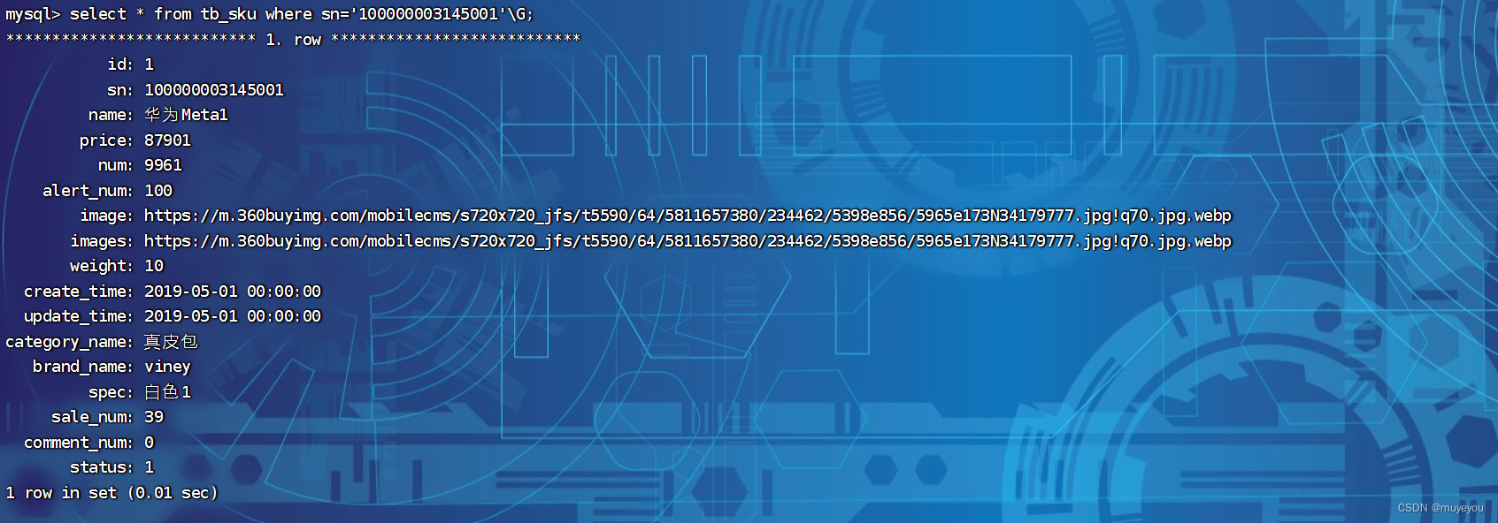 建立索引后,查询相同的语句,耗时仅0.01秒。