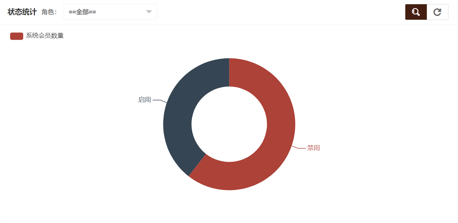 在系统会员统计中可以看到角色统计、状态统计,状态统计如图所示: