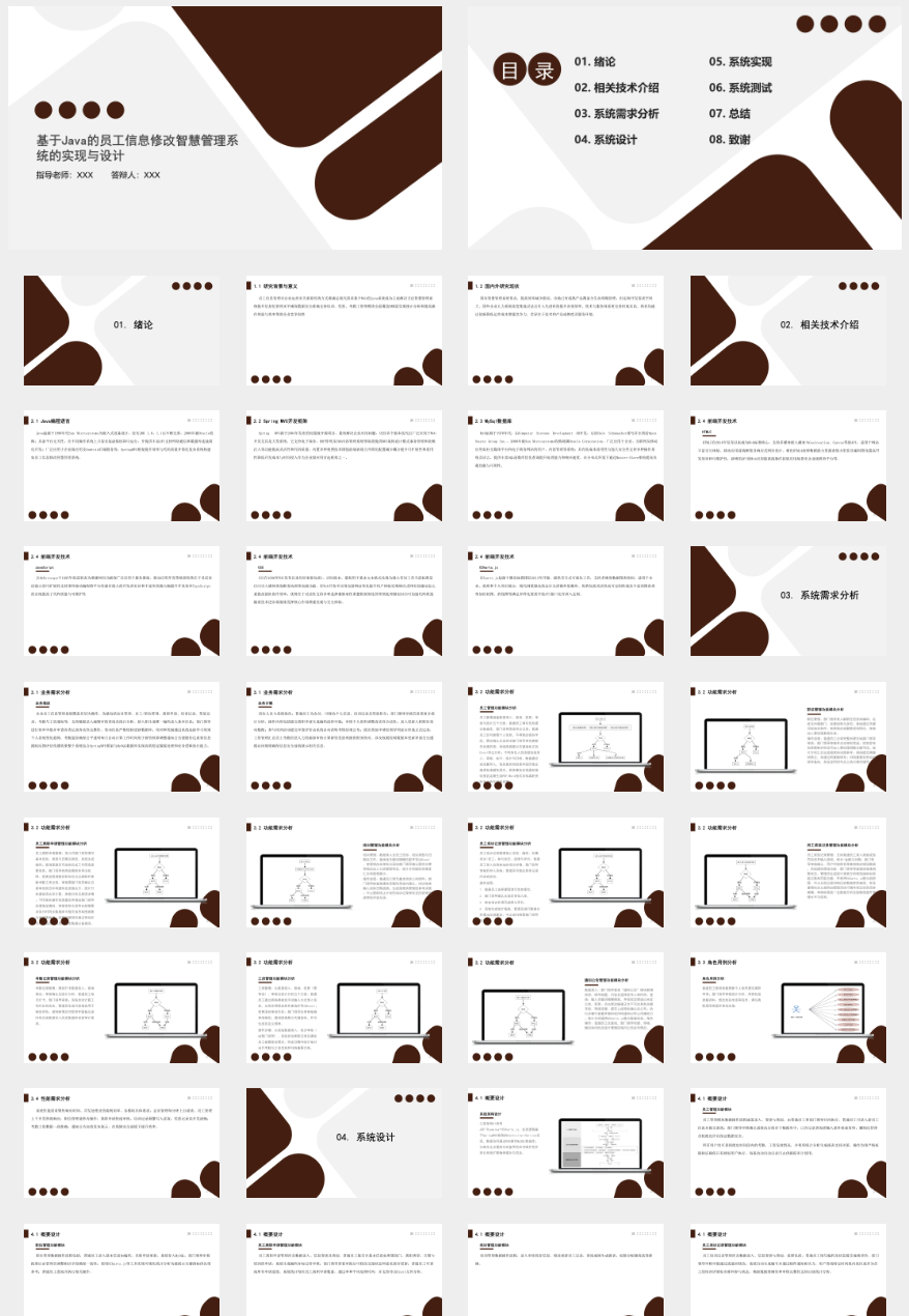 员工信息修改智慧管理系统以Java语言为核心,采用SpringMVC框架开发,并结合MySQL数据库构建。该系统涵盖了会员管理、员工管理、职位管理、离职申请管理、培训记录管理、奖惩记录管理和考勤工资通知等多方面功能模块,为普通员工和部门领导提供了便捷的数据录入与审核平台。相较于传统选题,“烂大街”的毕设项目往往缺乏创新性和实用性,而本系统则注重细节把控与用户需求对接,在设计上融入了先进的数据管理理念和技术,力求实现高度自动化及智能化的操作体验。 系统的会员管理模块涵盖了系统编码、密码等基础信息;员工管理模块全面记录每位员工的基本情况及其变动历史。职位管理和离职申请分别从岗位设置和人员流动两方面进行精准把控;培训与奖惩则围绕提升个人能力和规范行为展开,确保企业文化的稳步落实。考勤工资通知管理系统自动收集并统计各类关键数据,生成个性化的薪资报表和个人绩效报告。 考虑到初学者的学习曲线问题,系统采用模块化设计思路,并充分考虑了操作的直观性和易用性,让零基础用户也能快速上手使用。通过清晰的功能划分和合理的步骤引导,即便是编程新手也能够顺利完成项目开发与测试工作,在实战中积累宝贵经验的同时提高自身的软件工程能力。 总之,该系统不仅具备前沿的技术应用价值,更在实用性方面达到了前所未有的高度,为未来企业信息化管理提供了强有力的支持。