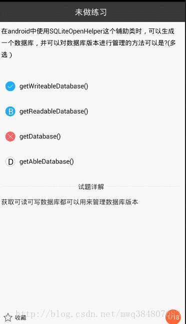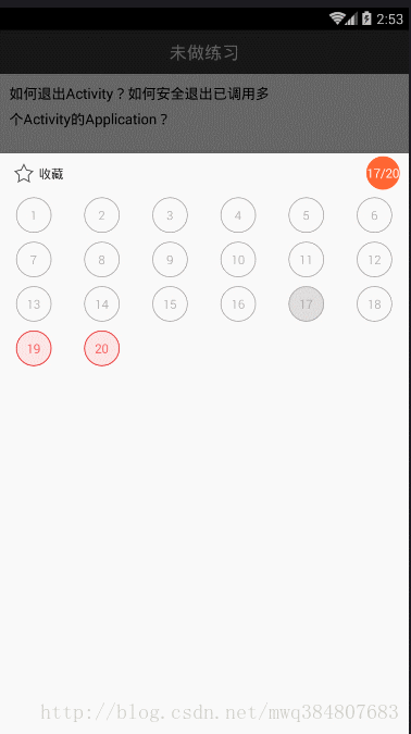 从第一题点击切换到第十八题,你会发现页面显示空白,如果从第十个页面切换到第十五个页面没事,平时大家估计没有发现这个bug,一般我们使用ViewPager都是底下5个tab页面,从第一个切换到第五个没事,之前我也以为把第二个参数设置false就行,今天才发现,原来如果当页面比较少的时候,大概十个以内,一般没有问题,如果超过十个页面切换就会出现空白,加载不了数据,扎心了,提出解决方案吧,ViewPager滑动使用的是Scroll,咱们把Scroll的滑动时间duration 设置为0就行。