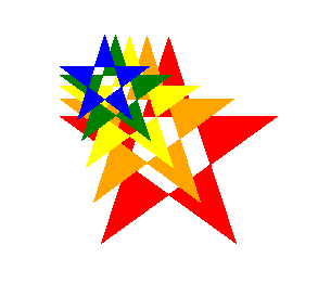 1. 绘制嵌套彩色五角星(大小逐层递减)