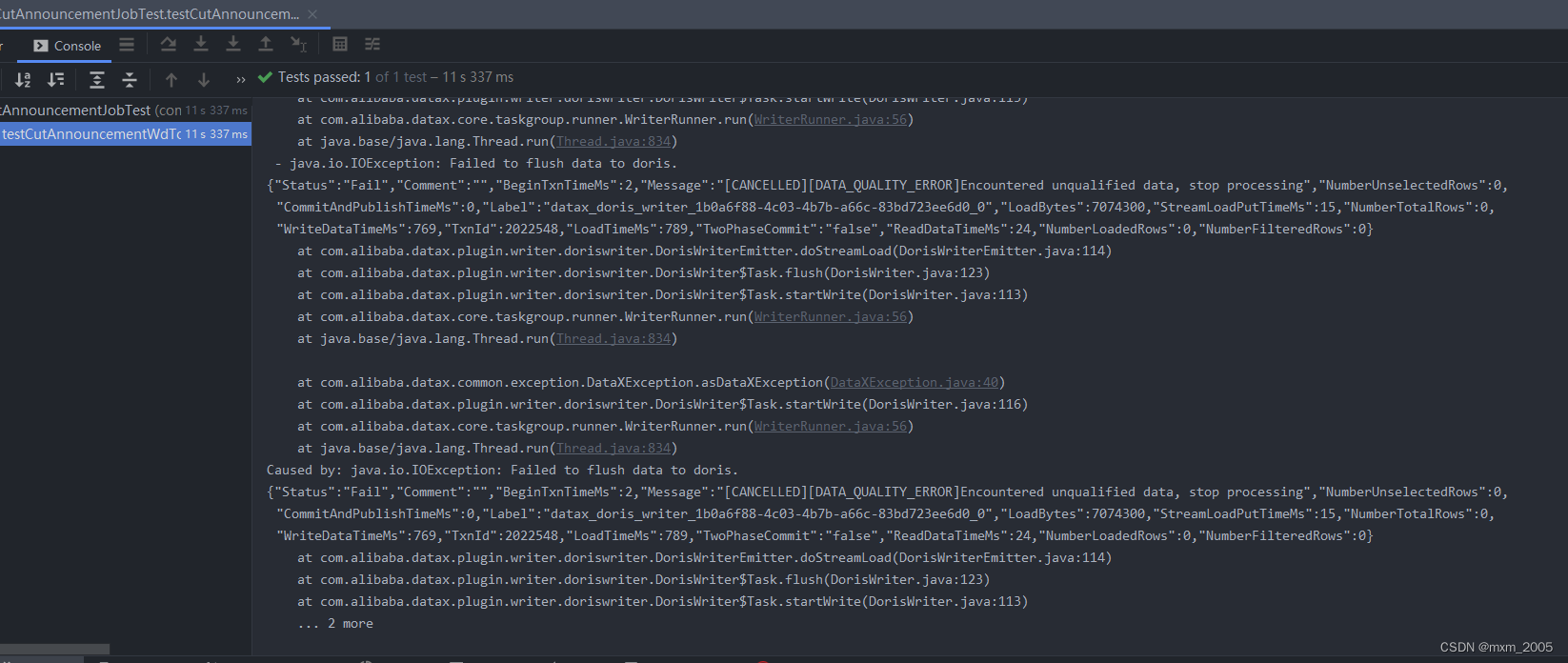 记录一次datax同步数据到doris错误[DATA_QUALITY_ERROR]Encountered unqualified data 记录一次datax同步数据到doris错误[DATA_QUALITY_ERROR]Encountered unqualified data