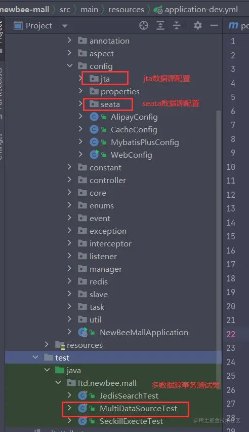 这个形式就是数据源在同一个 MySQL 下,但是 jdbc-url 上的数据库配置不同,涉及多个数据库时,如果方法中发生异常,只有开启事务的数据源会发生回滚,其他数据源不会回滚。看到这里可能有点迷惑,什么是 只有开启事务的数据源会发生回滚,其他数据源不会回滚?
