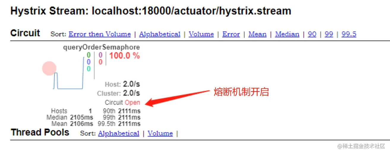 不同框架的熔断和降级的触发条件是不同的,本文咱们以经典的 Spring Cloud 组件 Hystrix 为例,来说明触发条件的问题。