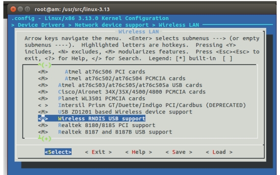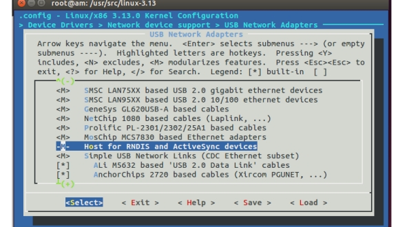 如果没有 RNDIS 驱动的,可在编译内核时按照下图下图配置