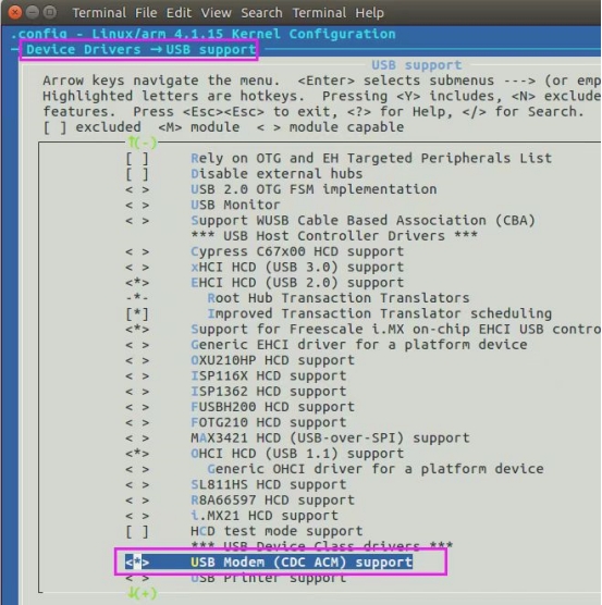 如果你的系统未编译 CDC - ACM 驱动进入内核,则可以在编译内核的时候参考如下配置: