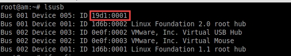 此时查看 USB 设备可以看到一张 ID 为 19d1:0001 的 USB 设备,这张就是 Air8000 虚拟出的 USB 网卡
