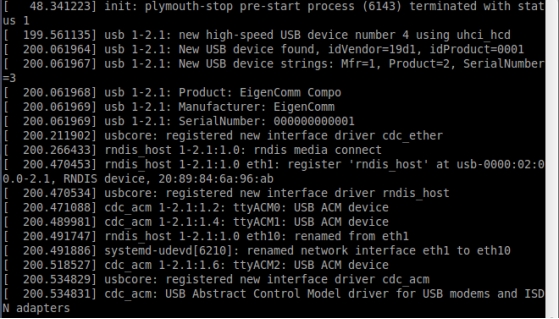 第 18 行,代表 RNDIS 被设置成 eth10 网卡,如下所示: