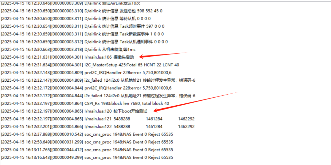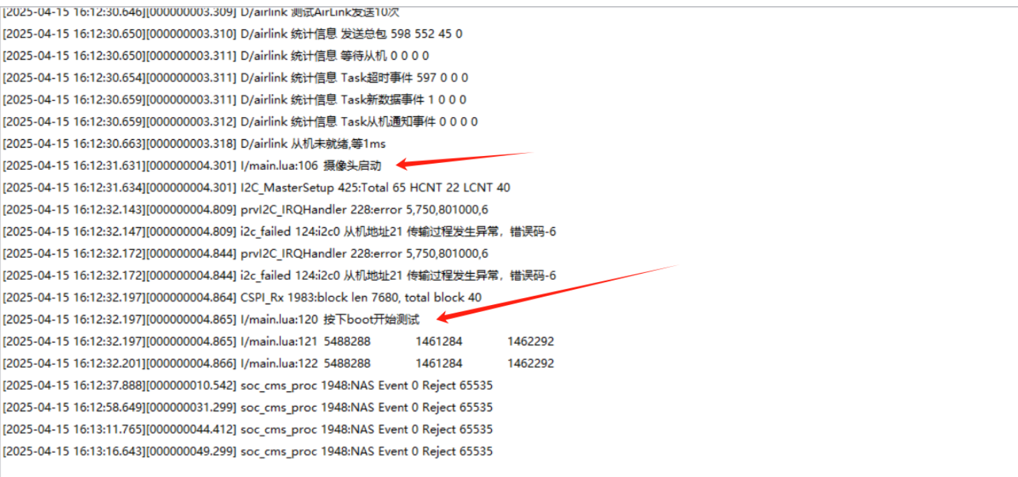 烧录完毕后可以看到日志中输出摄像头启动的打印。