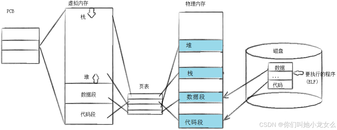 我们可以先不加载代码和数据,但是得要先把表头加载到内存里 ,代码的进程地址空间里是有代码起始地址start,终止地址end,各种数据区开头的数字就是从这个表中来的