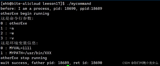 关于环境变量的参数,我们可以不填是因为环境变量也是数据,创建子进程时,子进程会继承父进程的环境变量,并且进程被替换后,环境变量不会被替换 。(不主动传参情况下)