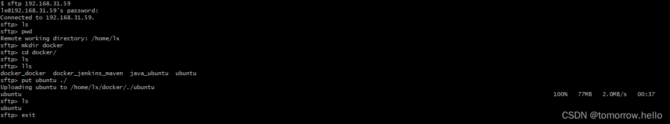 在sftp的环境下的操作就和一般ftp的操作类似了,ls,rm,mkdir,dir,pwd,等指令都是对远端进行操作,如果要对本地操作,只需在上述的指令上加'l'变为:lls,lcd, lpwd等。
