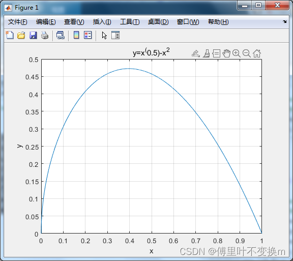 title('y=x^(0.5)-x^2') %标题