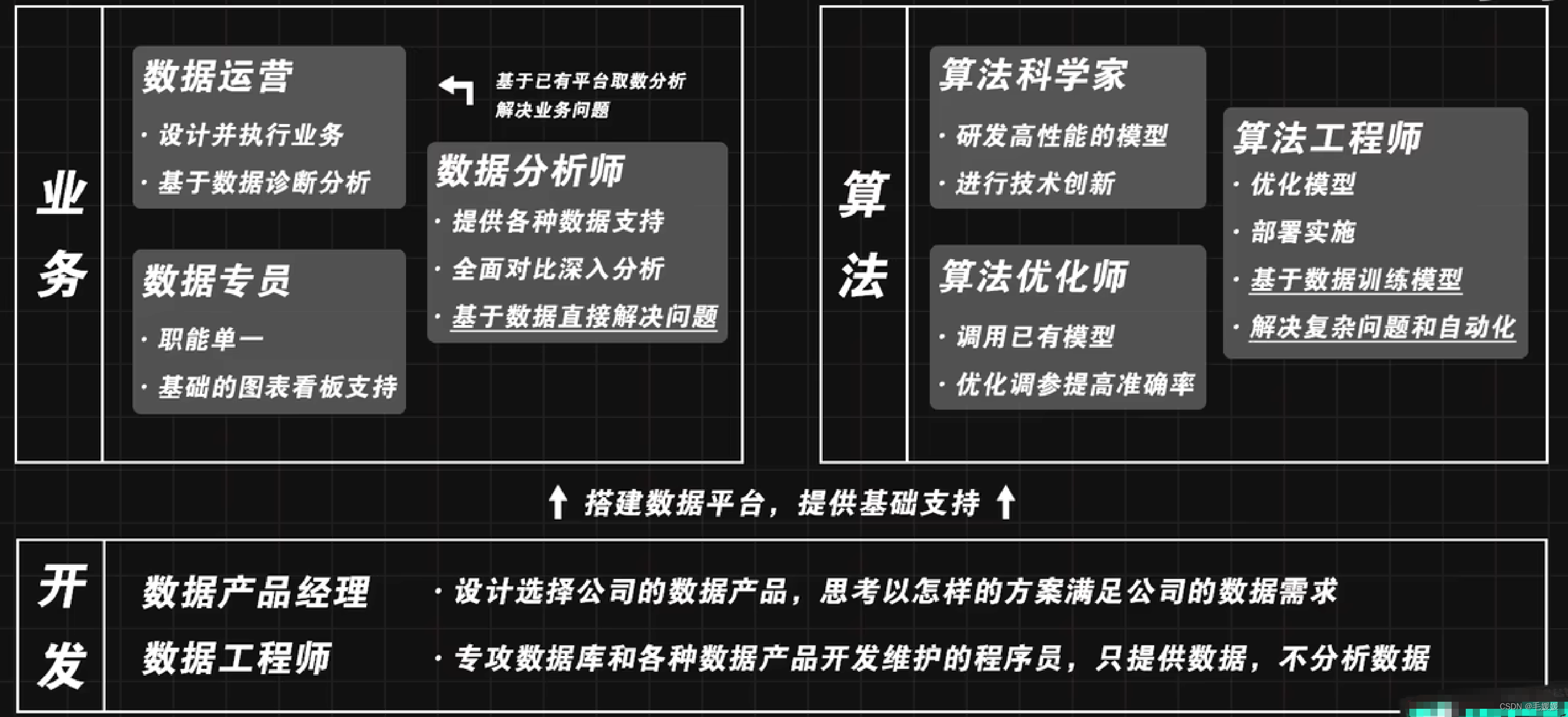 数据分析必备原理思路(二) 1.拆解问题的一个原则:MECE法则 2.拆解问题的四类方法:时间流程法、模型框架法、量化公式法、穷尽要素法 3.分析框架和问题量化在业务场景中如何应用:(1)业务诊断-指标异动分析 (2)业务增长