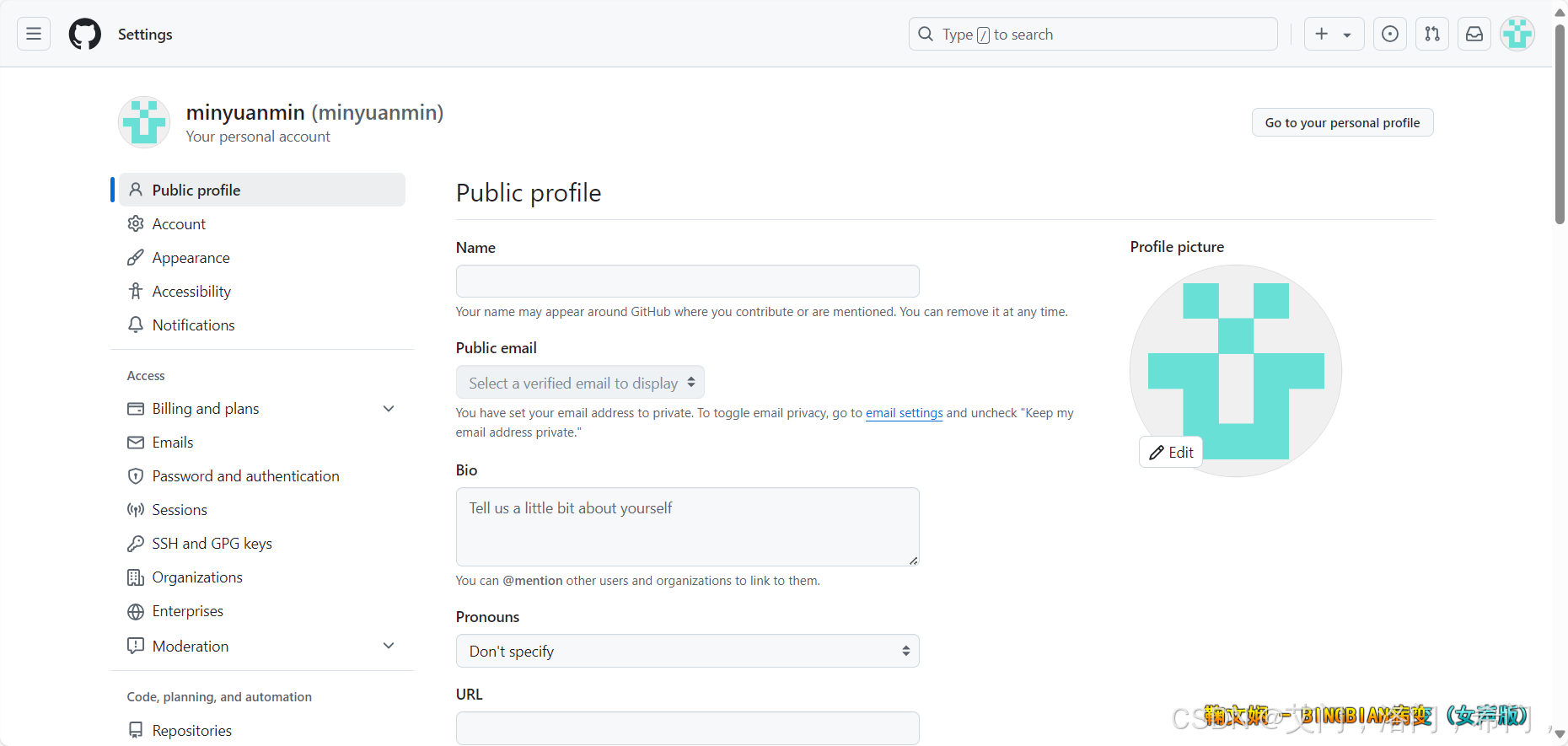 进入gitHub点击头像进入setting页面