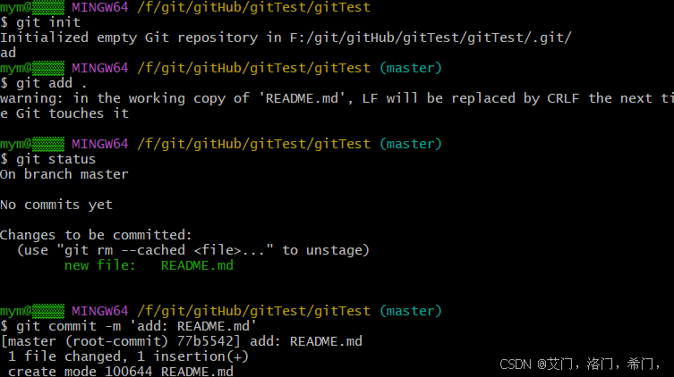 git add . git status git commit -m 'add: README.md'