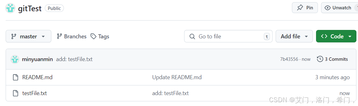 touch testFile.txt git add . git commit -m 'add: testFile.txt' git push origin master