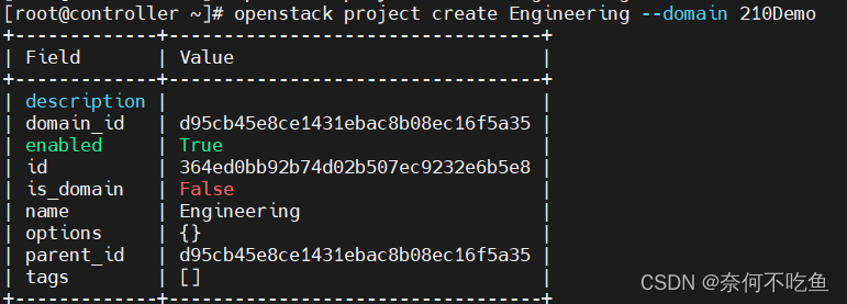 案例:创建 OpenStack 域 210Demo,其中包含 Engineering 与 Production 项目,在域 210Demo 中创建组 Devops,其中需包含以下用户: