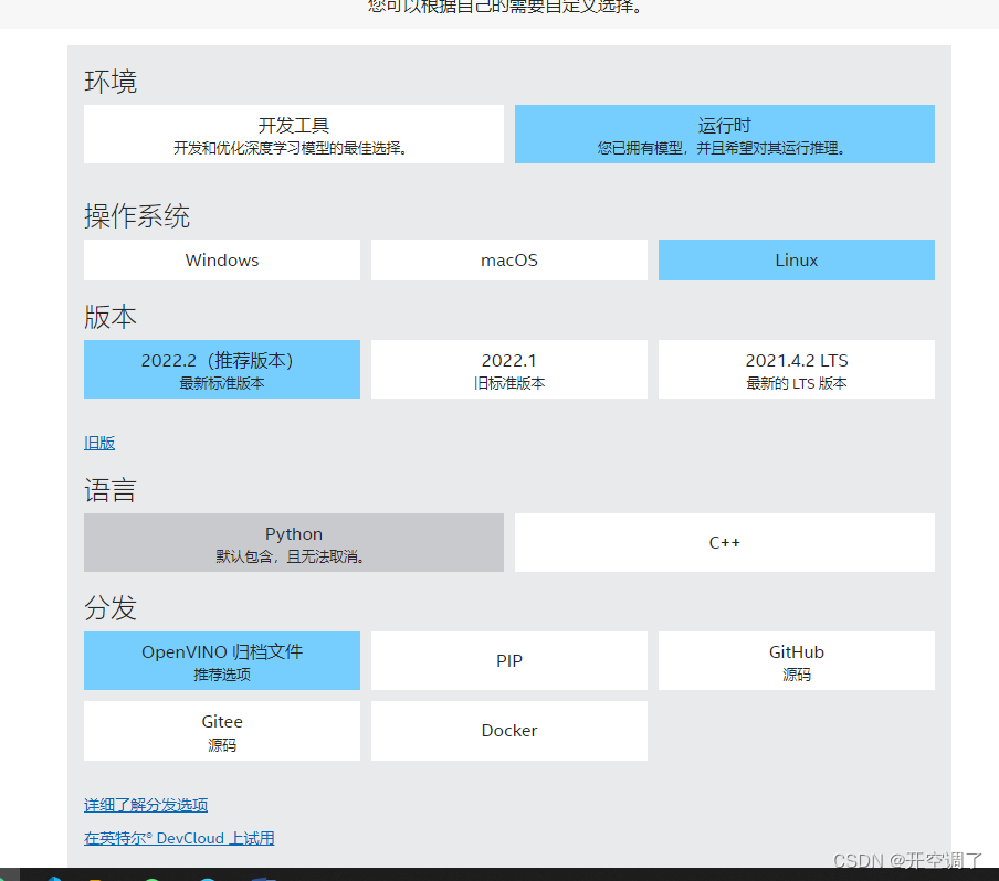 下载英特尔® 发行版 OpenVINO™ 工具套件 (intel.cn)