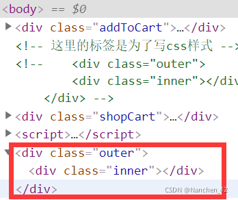 outer.appendChild(inner); //把inner塞到outer里面 inner为变量,不是字符串,所以不需要加引号