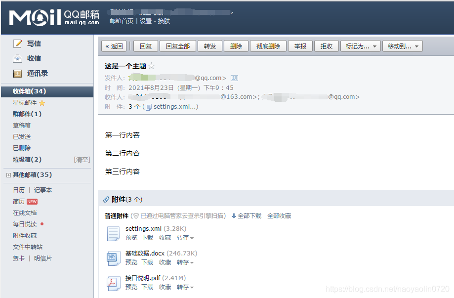 python邮件处理(1)-IMAP收取邮件 支持IMAP协议的邮件收取,底部有完整代码,笔者已测试对接QQ邮箱和163邮箱Python版本:3.9.6ide:PyCharm 2021.1.3前段时间要用到一个邮件附件下载的功能,当时任务没有派到我这里,这两天想自己写一个邮件读取的功能练练手,后续有机会完善下POP3协议收取和STMP协议发送的功能。 话不多说,直接开干。由于大部分都是解释文本的内容,就不细述开发过程,主要把遇到的几个问题描述下:1、需要获取使用的邮箱服务器的配置地址和端口,比如QQ邮箱...