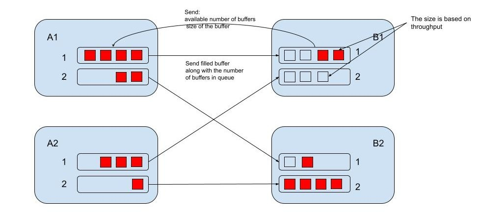 如FLIP-183中的下图所示,接收端的Buffer大小不再是固定的,而是动态地根据一个预设的消费时间阈值和一定时间段内的吞吐量确定。