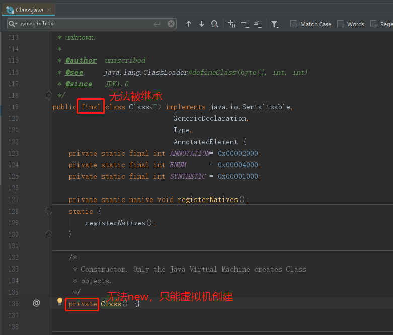 Class 类的构造器是私有的,所以需要通过 JVM 获取 Class。