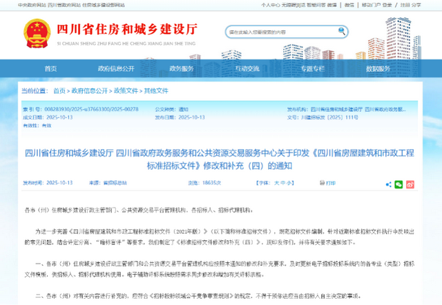 四川省住房和城乡建设厅、四川省政府政务服务和公共资源交易服务中心在10月联合印发《标准招标文件修改和补充(四)》,针对近期执行中的常见问题,结合评定分离、“暗标盲评”等要求,对过往的《四川省房屋建筑和市政工程标准招标文件(2021年版)》做了补充完善。通知要求各地更新电子招投标系统模板与评标表格,补充内容需符合《招标投标领域公平竞争审查规则》。其中特意提到:“暗标盲评”实施时间由各电子招标投标系统完成配套建设后另行通知。